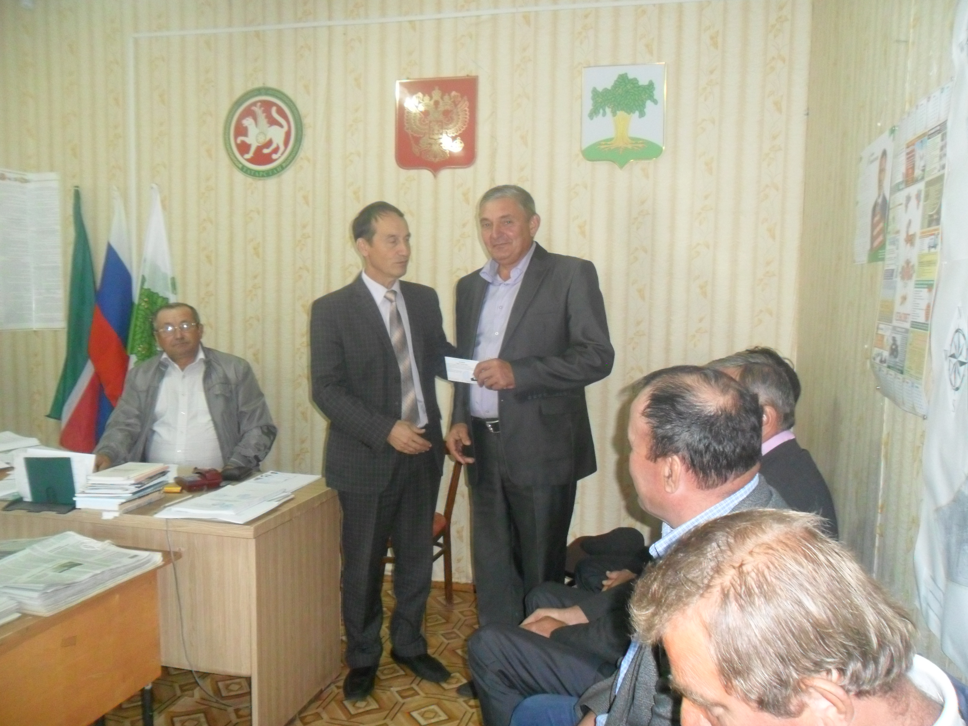 Сегодня в Большерусаковском СП состоялась первая сессия депутатов третьего созыва.В работе сессии принимали участие 7 депутатов , зам главы Кайбицкого муниципального района Хаялиев Р.Р.,председатель УИК № 1615 Нуреев Р.Х. поздравил депутатов и вручил удостоверения.
