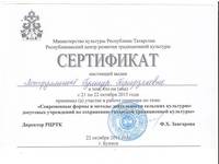 Методисты СДК Большерусаковского сельского поселения участвовали на семинаре " Современные формы и методы деятельности сельских культурно-досуговых учреждений по сохранению татарской традиционной культуры" в г.Буинске.Участникам вручили сертификаты.