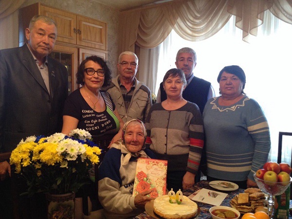 Мухаметшиновне исполнилось 90 лет.Её от имени Главы района и Большерусаковского СП поздравили Глава Большерусаковского СП Зиннатуллин Г.А. и методист Большерусаковского СДК Тимершина Р.Г. Также было передано поздравление от Президента РФ В.В.Путина.
