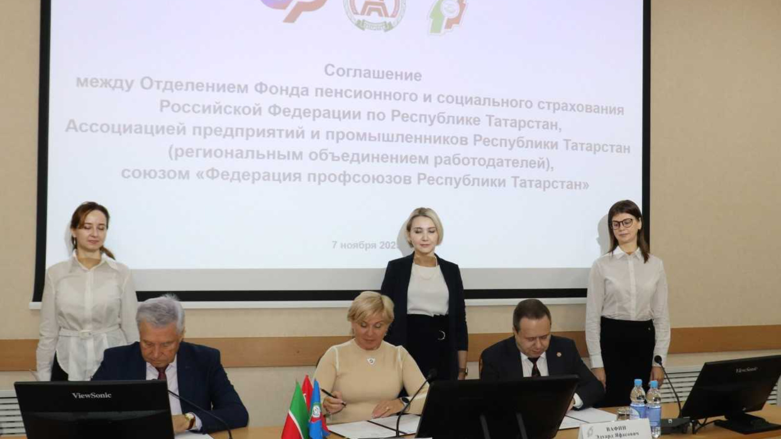 Социаль фондның Татарстан бүлеге идарәчесе Эдуард Вафин, Татарстан Республикасы Профсоюзлар федерациясе рәисе Елена Кузьмичева һәм Татарстан Республикасы предприятиеләре ассоциациясе президенты Александр Лаврентьев эшләүче гражданнарны социаль яклау системасының нәтиҗәлелеген арттыру мәсьәләләре буенча үзара хезмәттәшлек турында килешү имзаладылар.